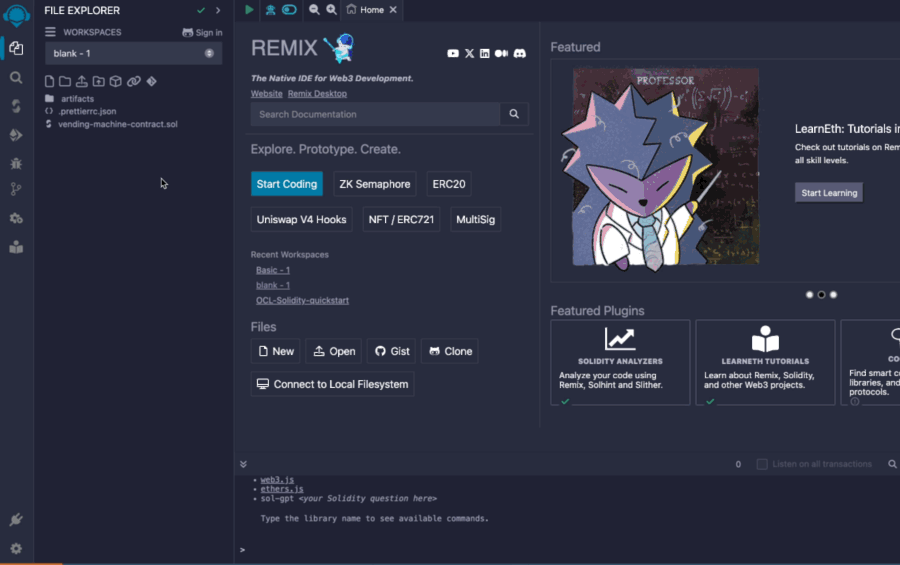 - Converted a vending machine's Javascript business logic into a Solidity smart contract.